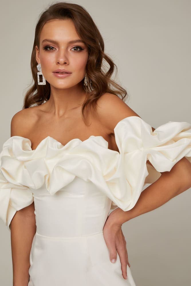 Be the center of attention with our Homecoming Cocktail Dresses! This mini dress features an off shoulder and strapless design. along with a frill ruffle design and satin fabric. Its solid color and above knee length create a flattering and sexy silhouette. perfect for any party. Get ready to turn heads and feel confident in this tight fitted dress that hugs your curves like a glove.