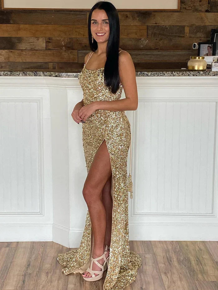 The spaghetti strap prom dress is a classic and timeless choice. The delicate straps highlight your shoulders and neckline. while the flowing fabric hugs your body and creates a stunning silhouette.