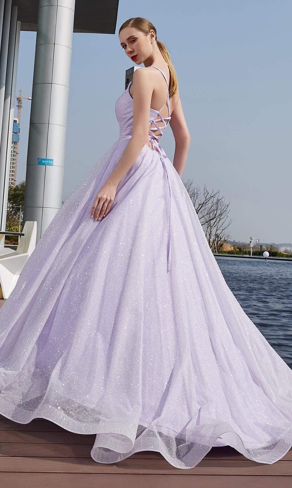 Look and feel glamorous in this Jadore J19015. Be the most beautiful girl in this dress shimmering with glitters allover. It features V neckline and spaghetti straps on the bodice matched with a flared and flowy A-line silhouette in full length. Back is crisscross patterned while using lace-up tie to close. Simplicity and elegance as defined by Jadore.