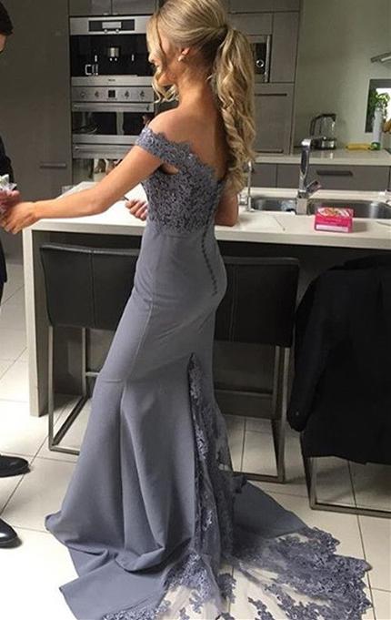 Lace Sweetheart Mermaid Off Shoulder Sweep Train Bridesmaid Dresses