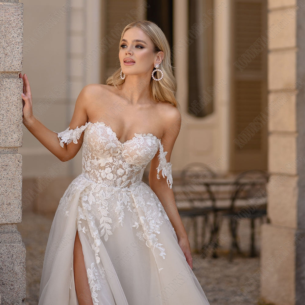 Light Champagne Pastrol Wedding Dresses Off Shoulder Sweetheart Bride Gowns Side Split A-Line Tulle Vestido De Novia