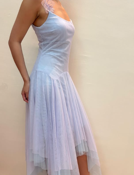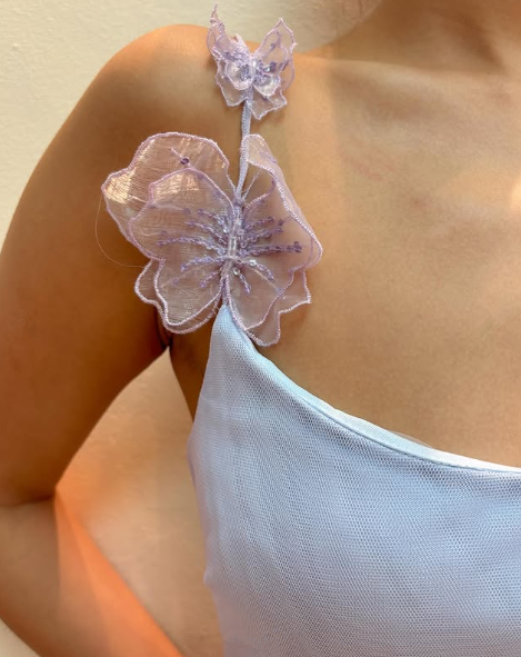 Lilac Tulle A Line Party Dress Straps Homecoming Dress With Flowers Y8143
