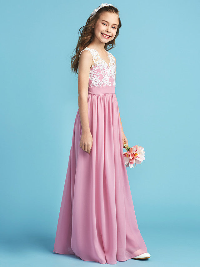 Long A-line Chiffon Flower Girl Dresses Lace Junior Bridesmaid Dress