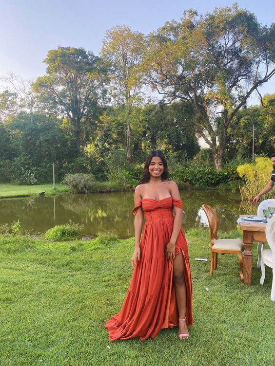 Long prom dress evening dress with side slit Y5706
