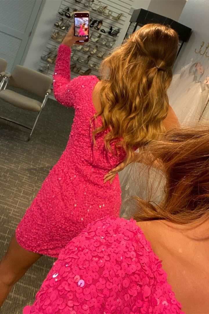 This one shoulder sequin bodycon dress is perfect for any special occasion! With its one shoulder design and sparkling sequin details. it's sure to make you stand out. Great for prom. weddings. or homecoming. this homecoming dress sleeves will make you feel confident and chic. Grab yours today!