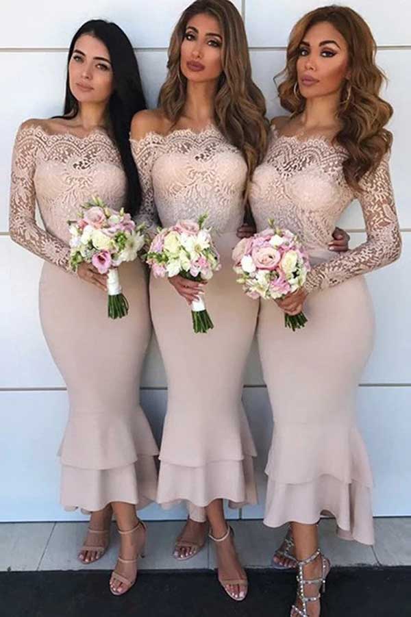 Mermaid Lace Top Off-the-Shoulder Long Sleeves Bridesmaid Dresses. MBD182
