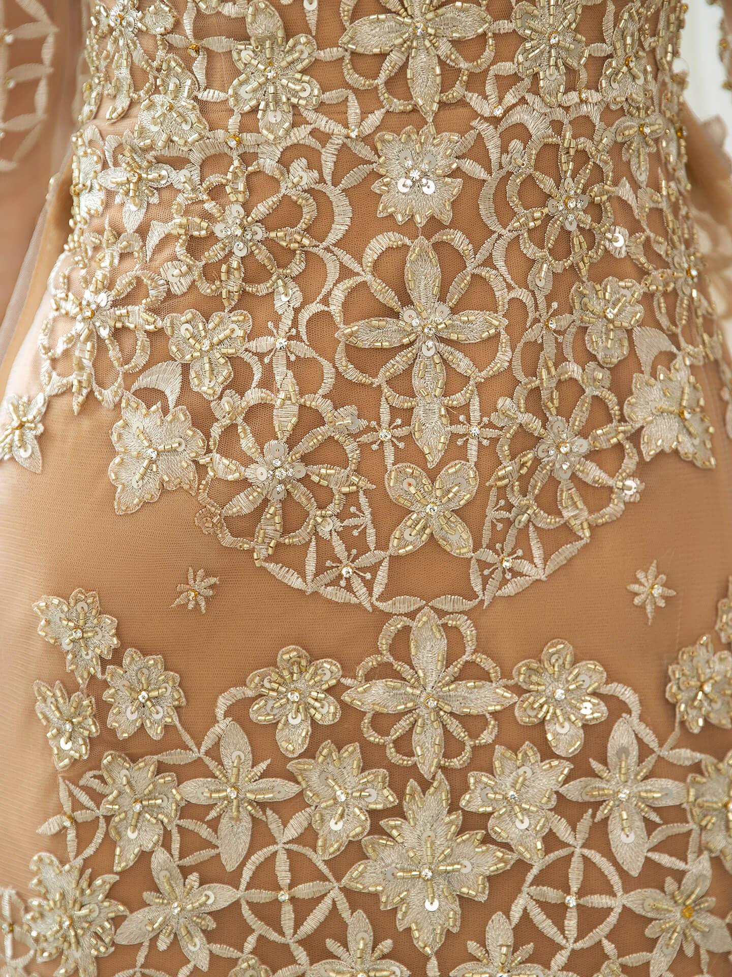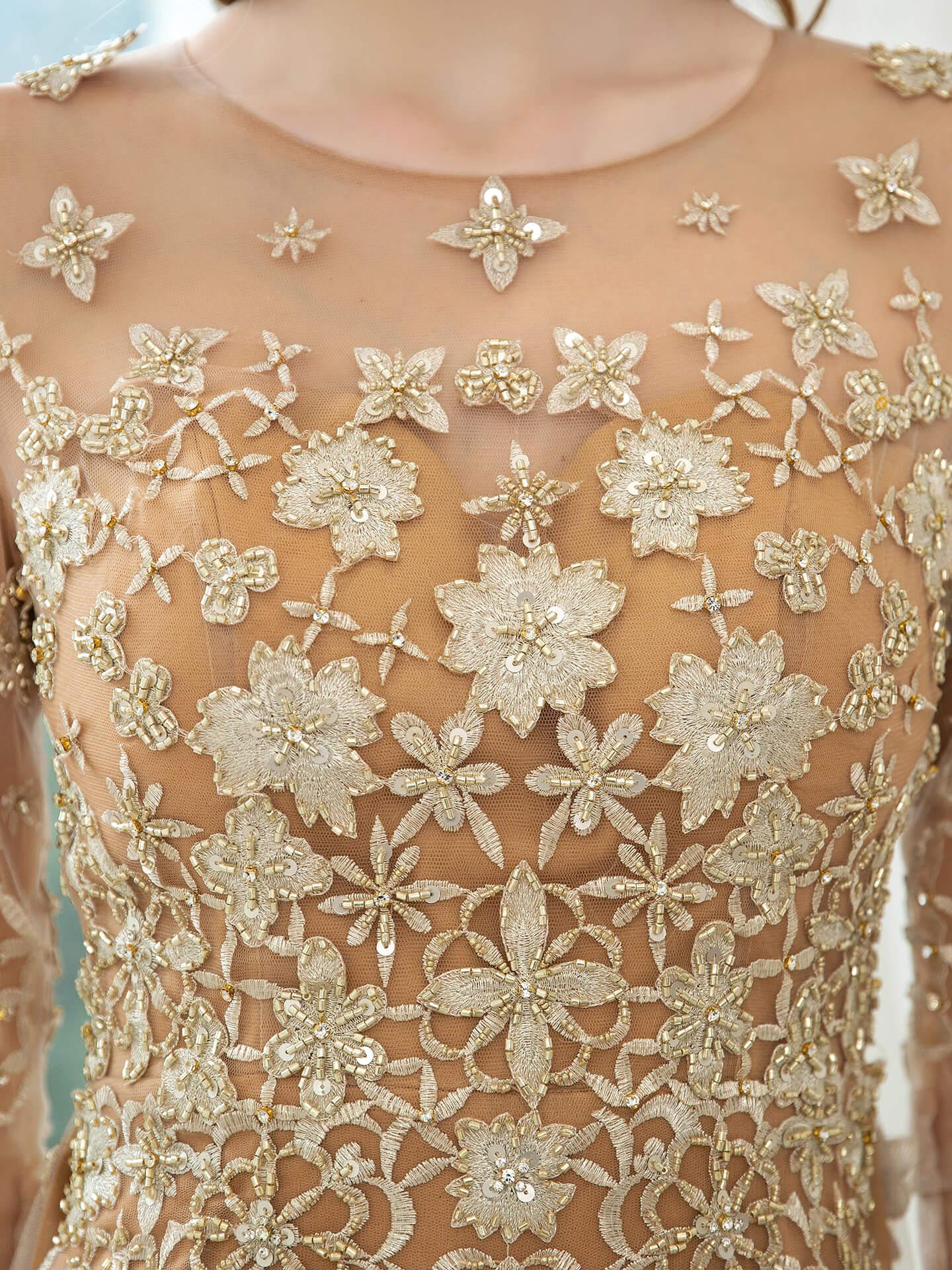 Baoleely Mermaid / Trumpet V-neck Beaded Luxurious Sexy Formal Evening Dresses Long Sleeve Floor Length Prom Dresses