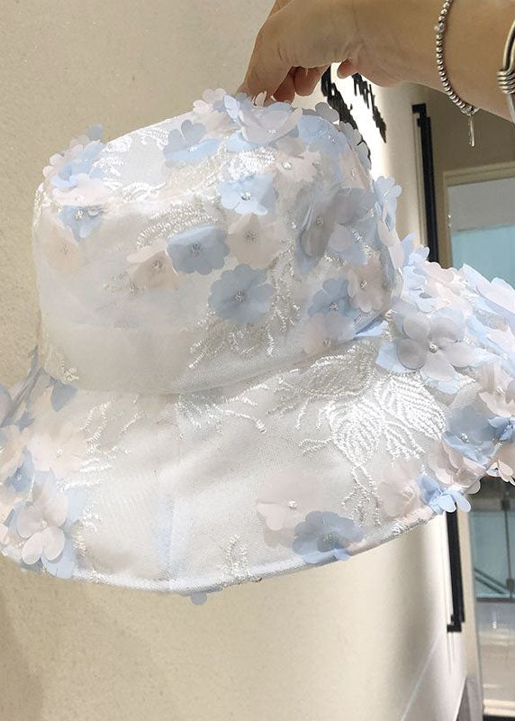Modern Blue Floral mbroidery Tulle Bucket Hat