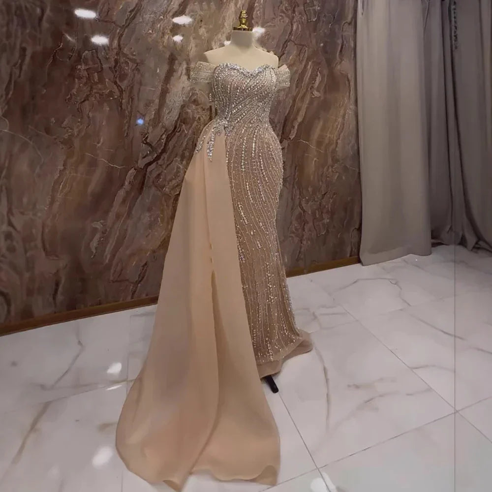 Nude Luxury Beaded Mermaid Evening Dress Gown with Overskirt LA72911