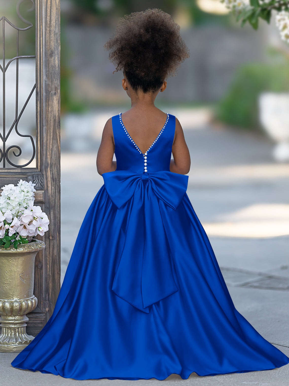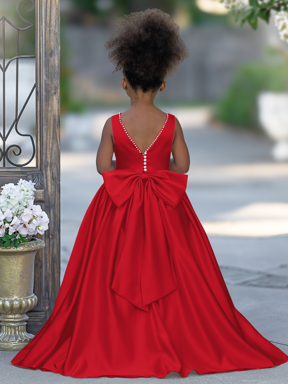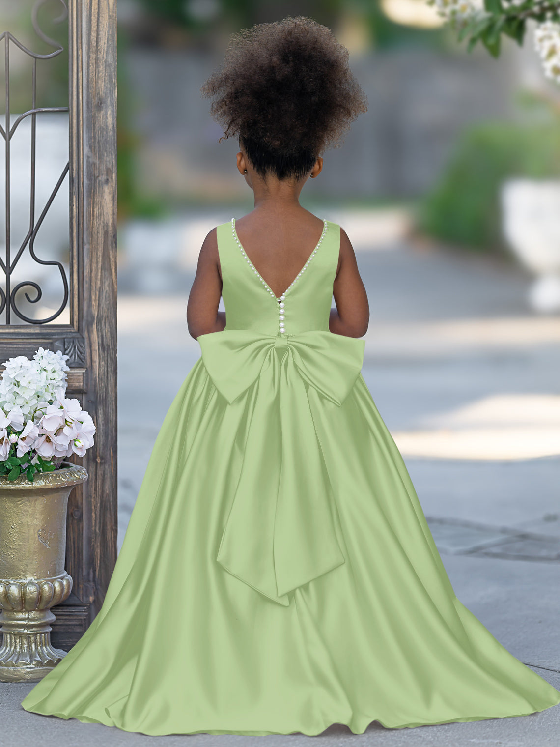 Pink Sleeveless Satin Beaded Neckline and Bow Detail Dress