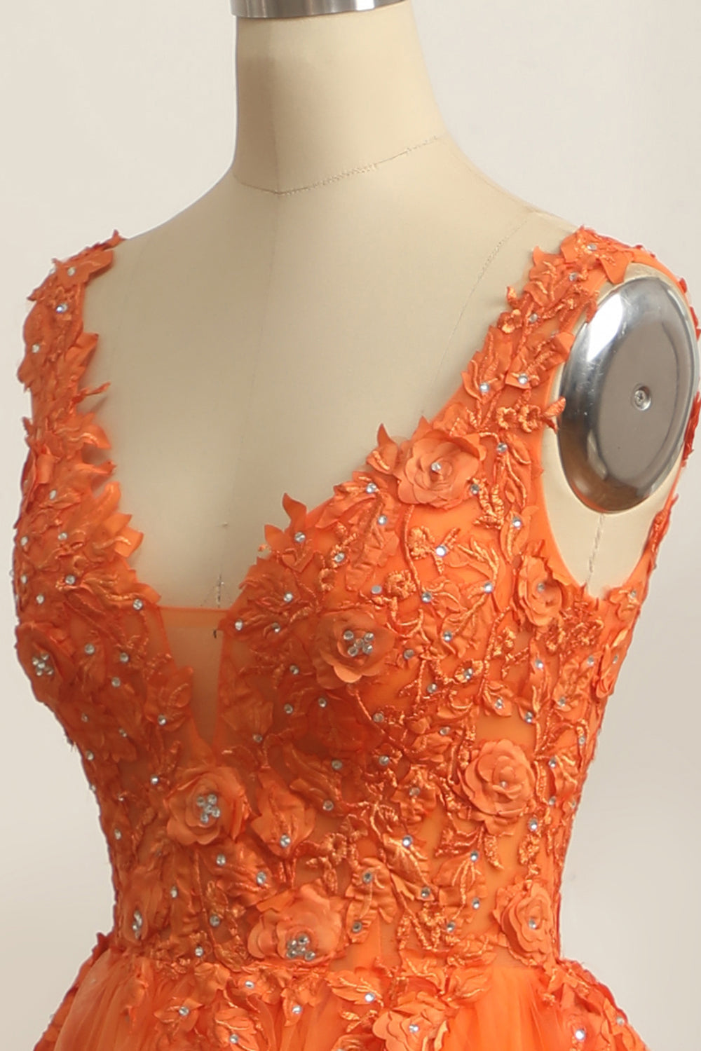 Princess A Line V Neck Orange Long Prom Dress with Appliques