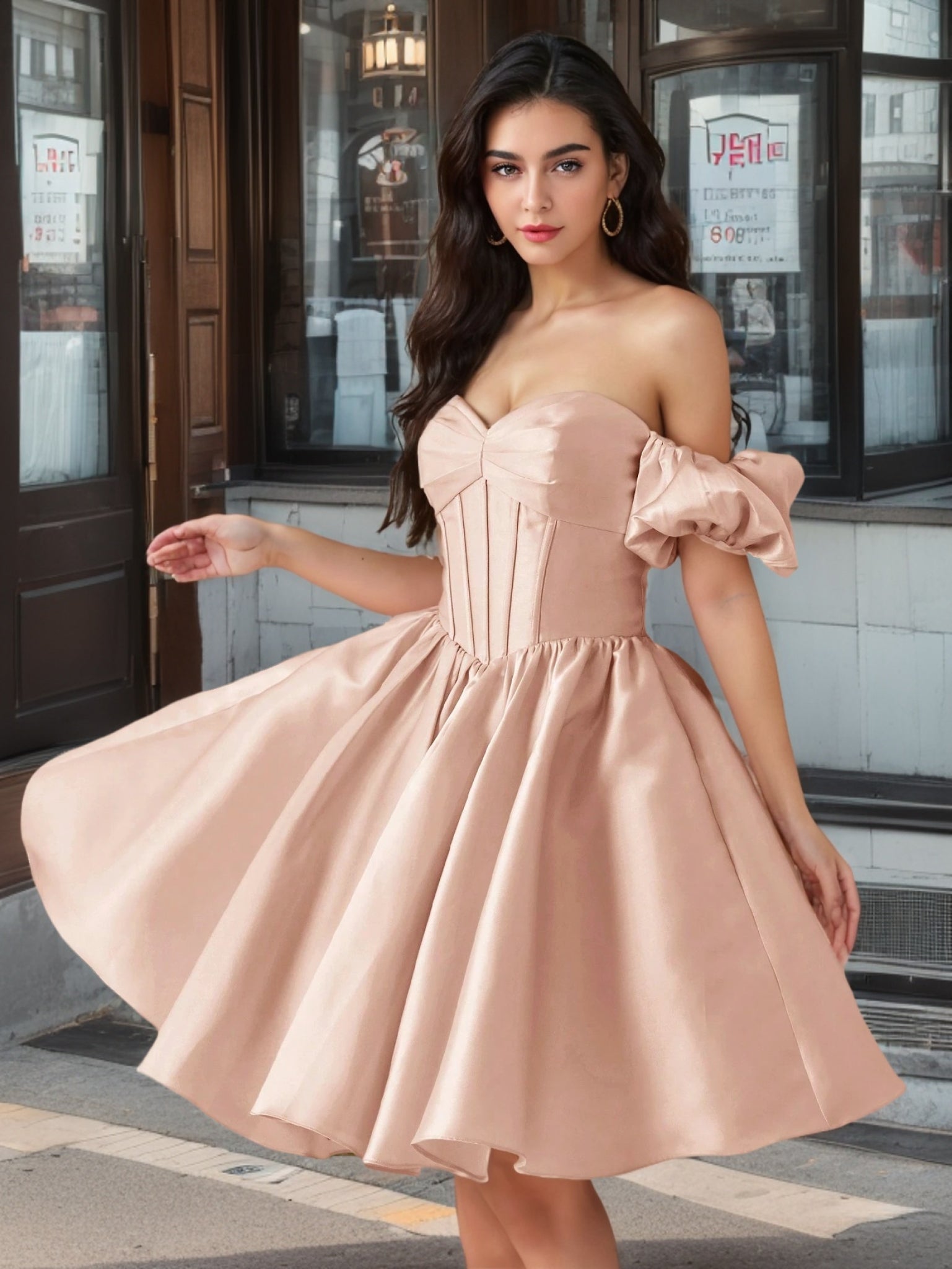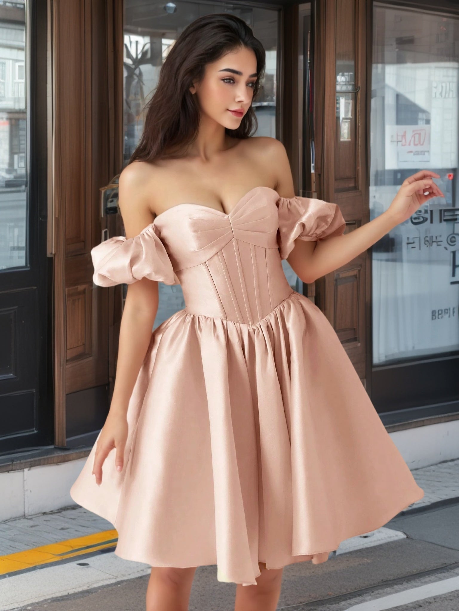 If you're seeking Prom Dresses With Puffy Sleeves or Puffy Sleeves Homecoming Dress. look no further! This dress features charmingly puffy sleeves. perfect for making a grand entrance at proms and homecoming bashes. The sleeves bring a sense of airiness. highlighting your shoulders gracefully.