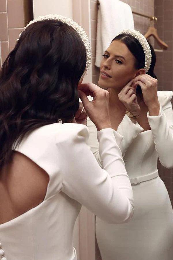Retro Satin Long Sleeves Sweep Train Sheath Wedding Dress Bridal Gown WD625