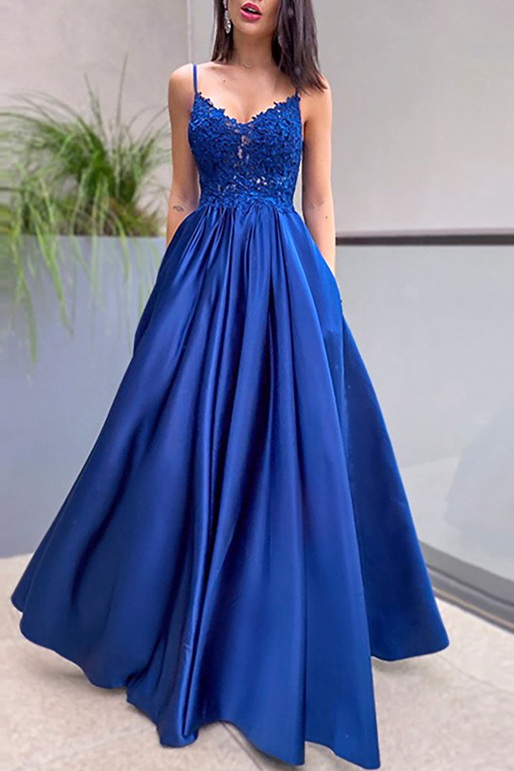Royal A-line Prom Dress with Slit