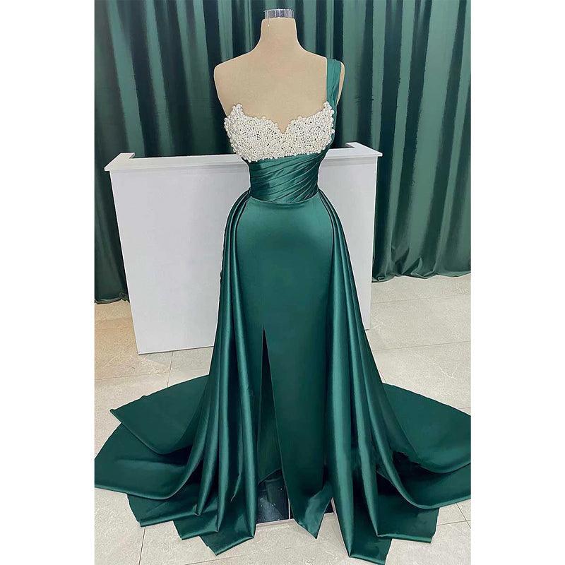Satin Off-shoulder Beaded with Detachable Train Party Prom Evening Dress