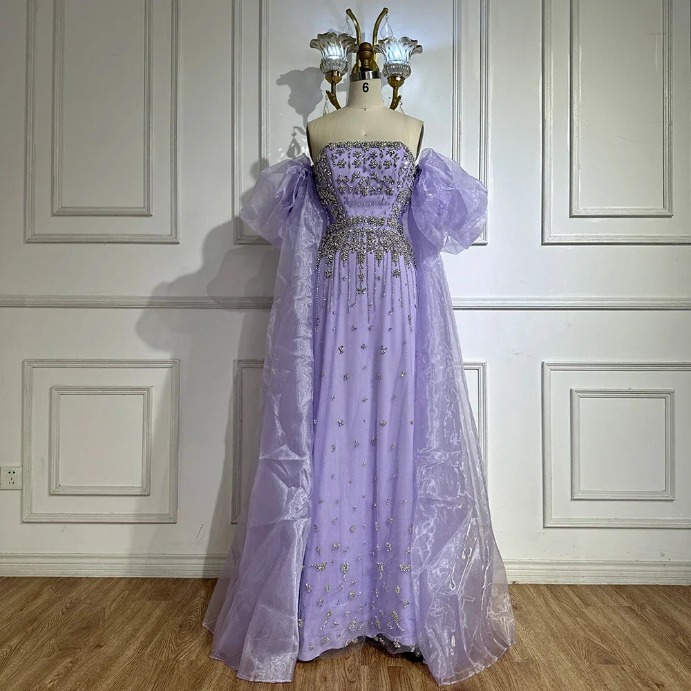 2025 Black Beaded Mermaid Evening Dresses Gowns with Puff Sleeves Overskirt for Formal Occasion LA72002