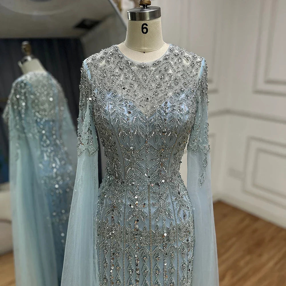 2025 Saudi Arabia Caramel Mermaid Elegant Cape Sleeve Luxury Beaded Evening Gown for Formal Occasion LA72775