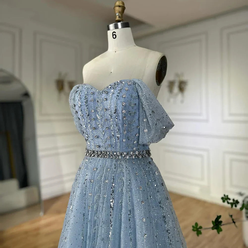 Blue A Line Beaded Backless Evening Dress Gown LA72834
