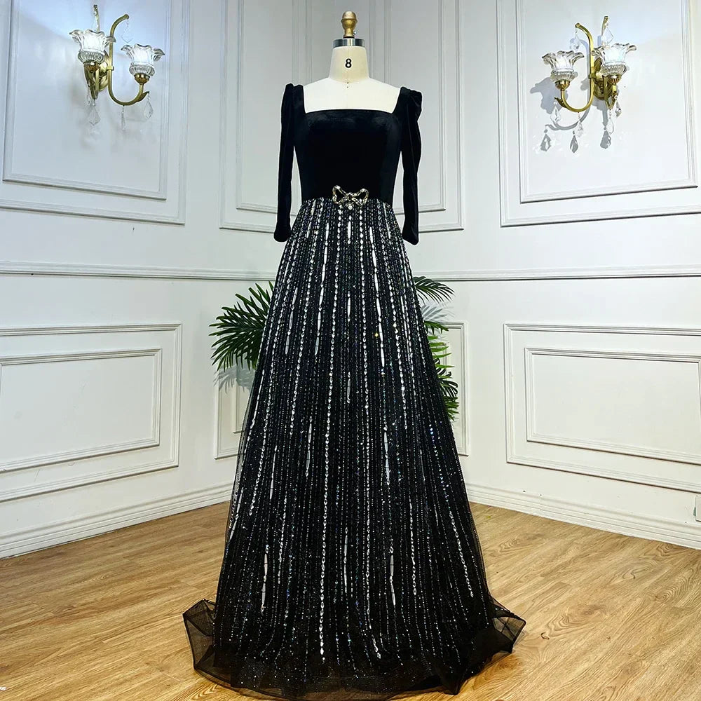 Arabic Black A Line Off Shoulder Shiny Beaded Luxury Evening Dresses Gowns For Women Wedding Party 2025 LA71826A