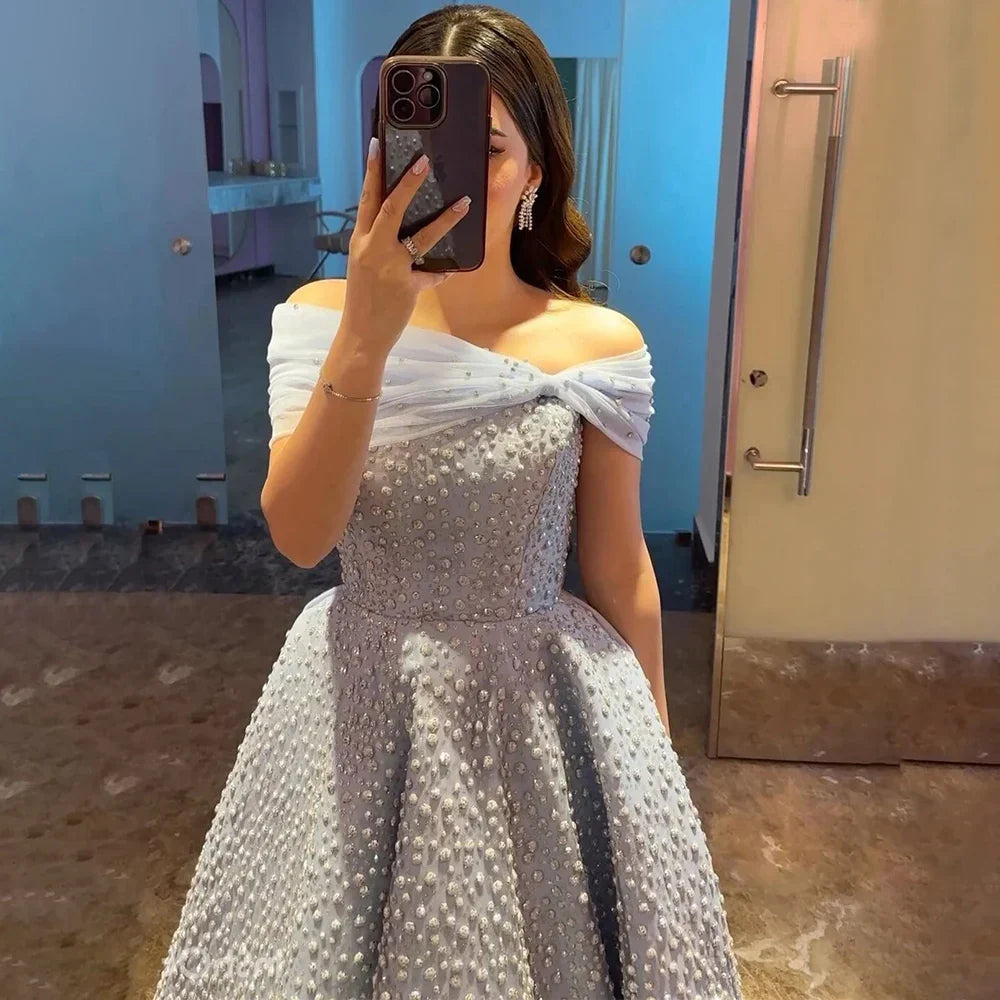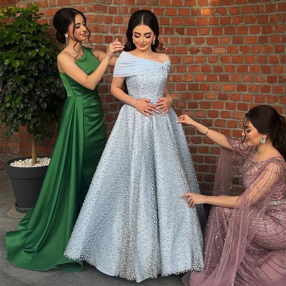 Arabic Blue Elegant A Line Floor Length Luxury Evening Dresses Gowns Beaded For Women Wedding Party 2025 LA72208