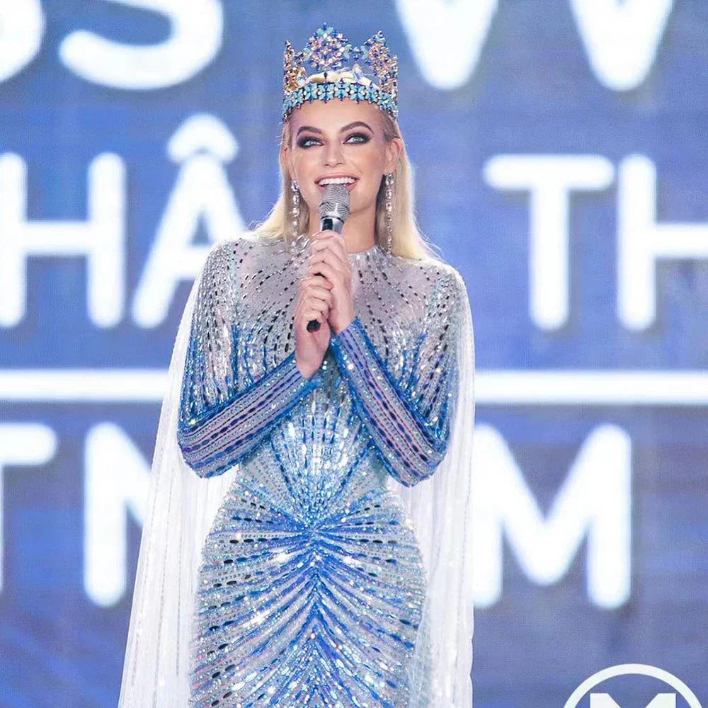 Arabic Blue Mermaid Elegant Evening Dresses Gowns Long 2025 Beaded Luxury For Women Party LA71846