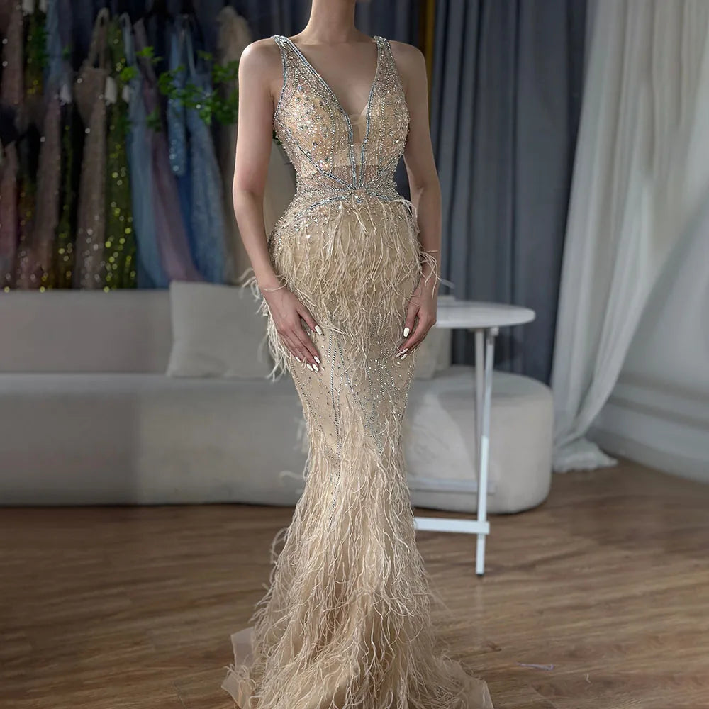 Make your special day even more special with this elegant ivory mermaid lace wedding dress. With a striking neckline and bohemian-style skirt. this exquisitely designed beach wedding dress is sure to turn heads. Add a romantic touch to your ceremony with WD288.Item DetailFabric:LaceSilhouette:MermaidSleeves:SleevelessColor:As Picture.Custom...