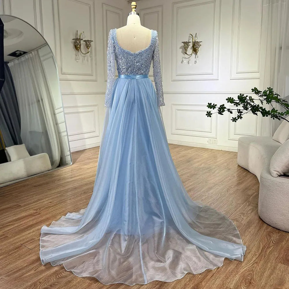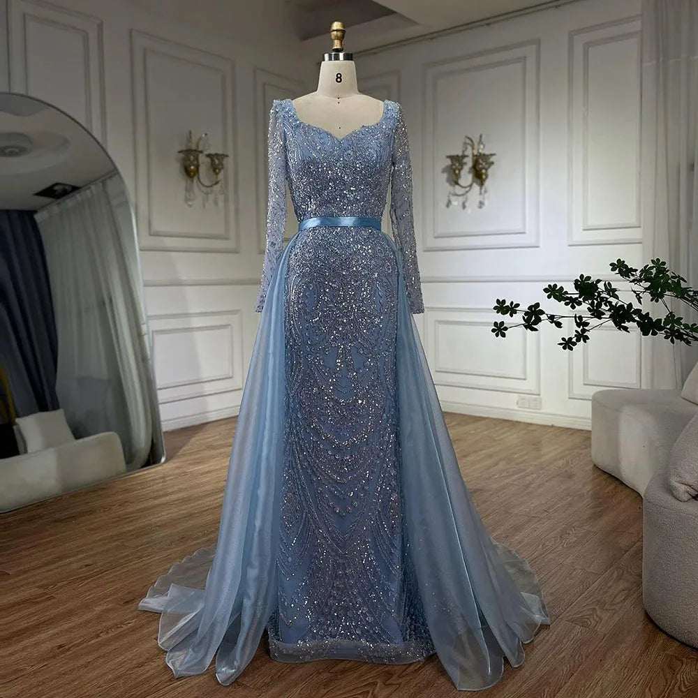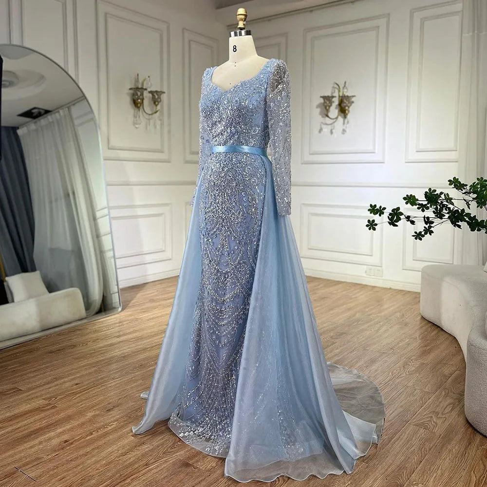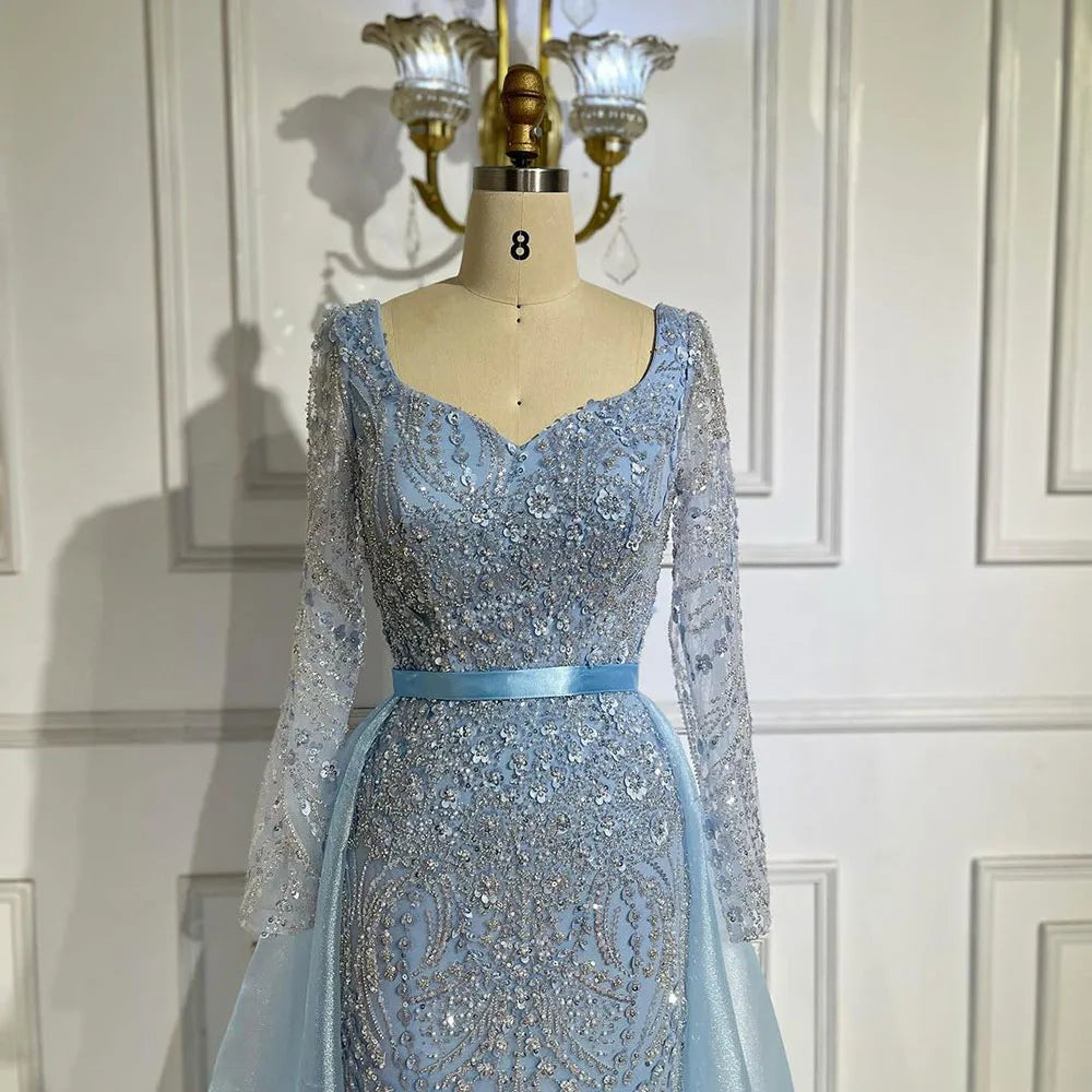 Arabic Blue Sweetheart Mermaid Evening Gown Beaded Overskirt - Luxury Dresses for Woman's Wedding Party 2025 LA72548