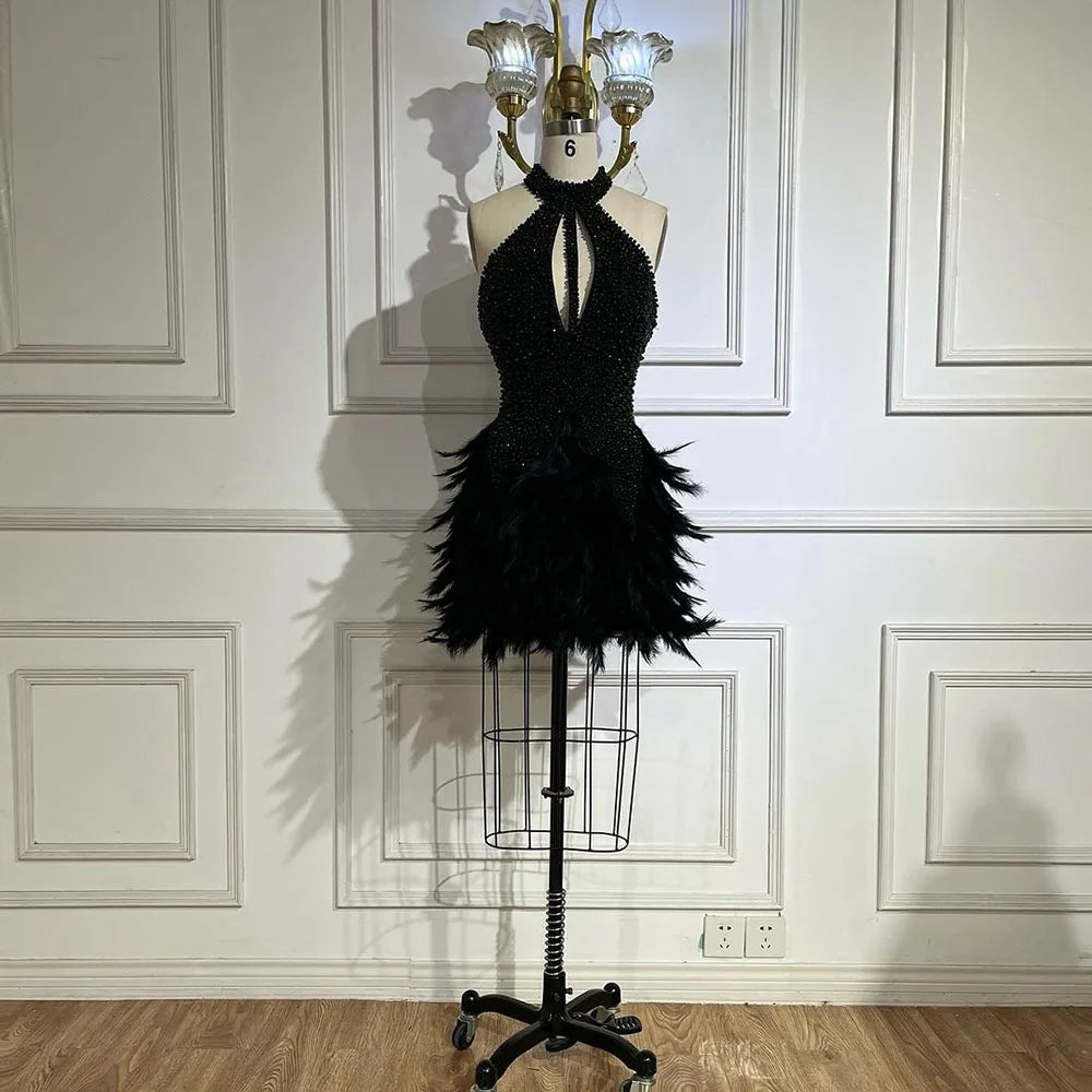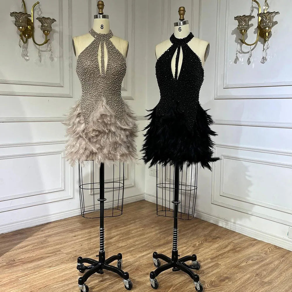 Arabic Brown Elegant Short Dresses Beaded Feathers Mermaid Cocktail Gowns 2025 For Women Party Couture LA72549