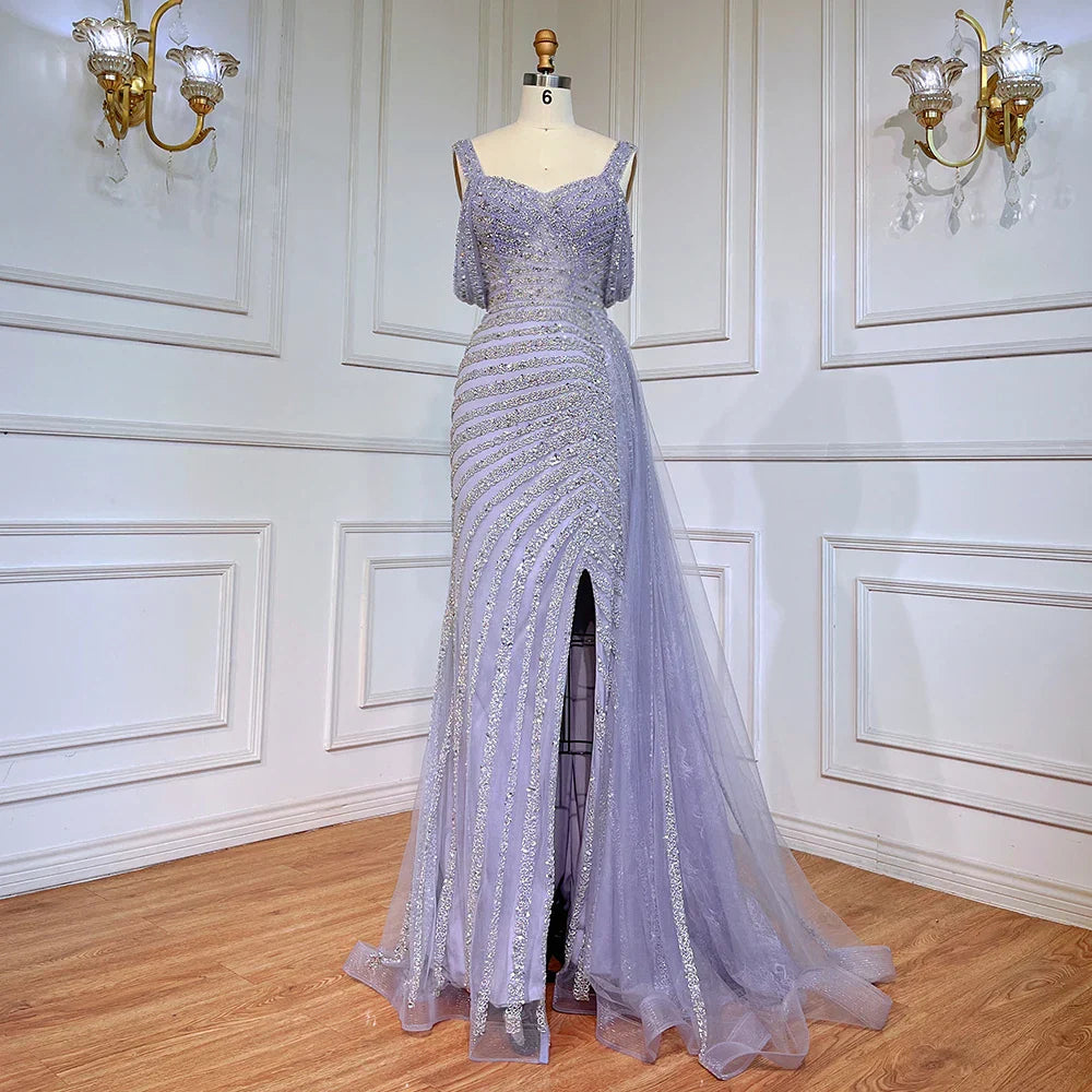 Arabic Caramel Mermaid High Split Elegant Beaded Luxury Evening Dresses Gowns 2025 For Woman Party LA71679