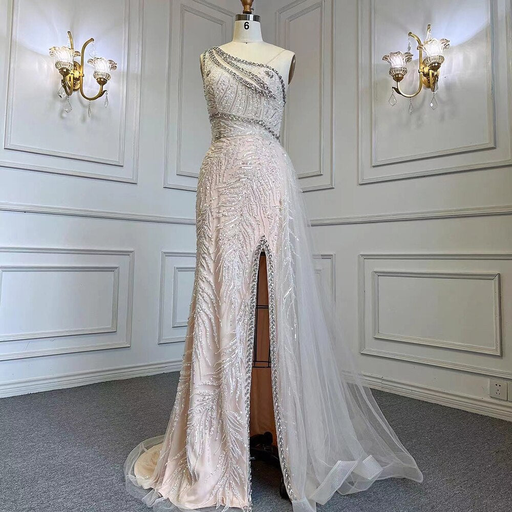 Beige Sexy High Split Elegant Evening Dresses Gowns Mermaid Beaded With Overskirt 2025 For Women Party LA71623