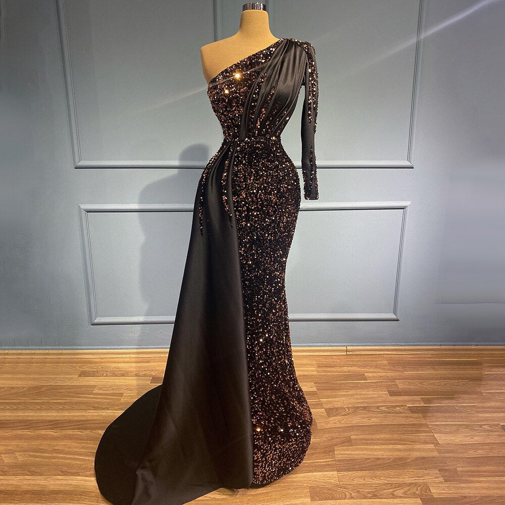 Black Mermaid One Shoulder Evening Dresses Gowns 2025 Sequin Luxury Elegant For Women Party LA71542