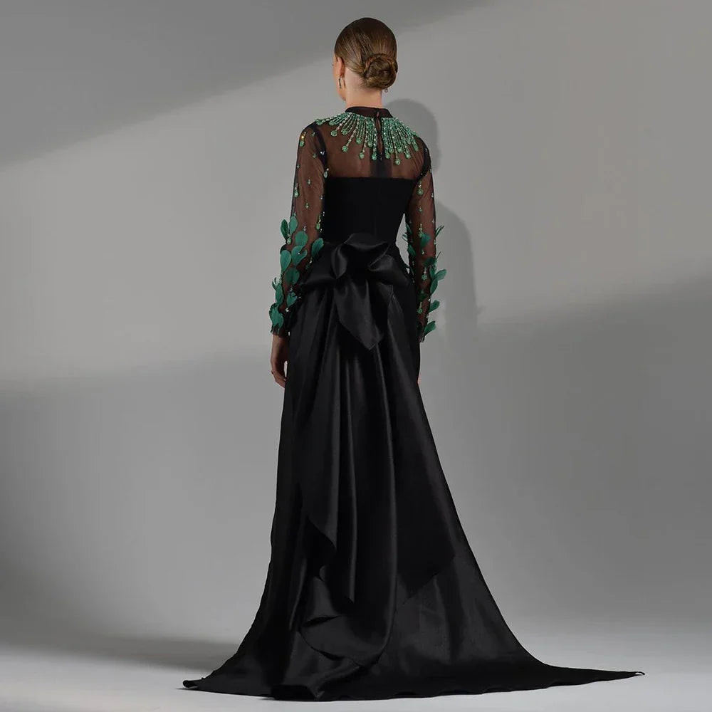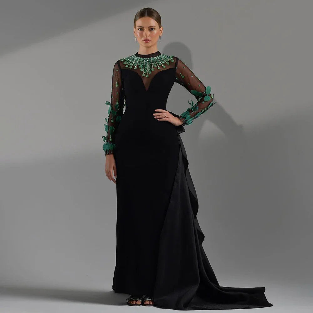 Black Satin Mermaid Lace Beaded Luxury Long Evening Dresses Gowns For Women Wedding Party 2025 LA72230