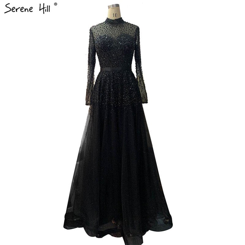 Black Silver A-Line High Neck Evening Dresses Sequined Long Sleeves Sexy Formal 2025 For Women Party LA70066