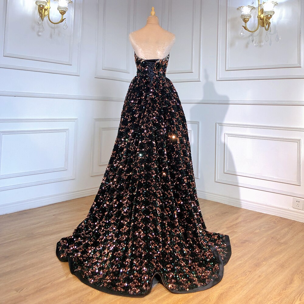 Black Strapless Evening Dresses Gowns 2025 Sequin Luxury A-Line For Women Wedding Party LA71523