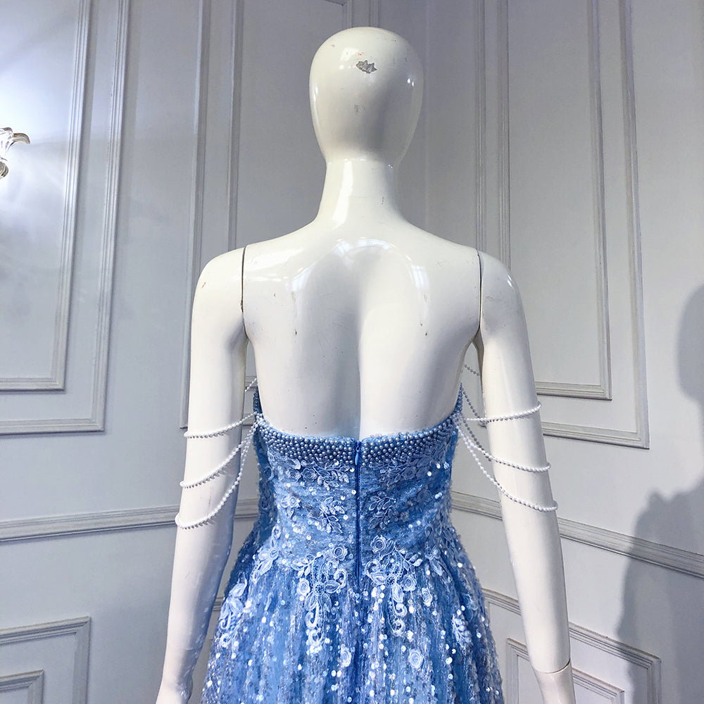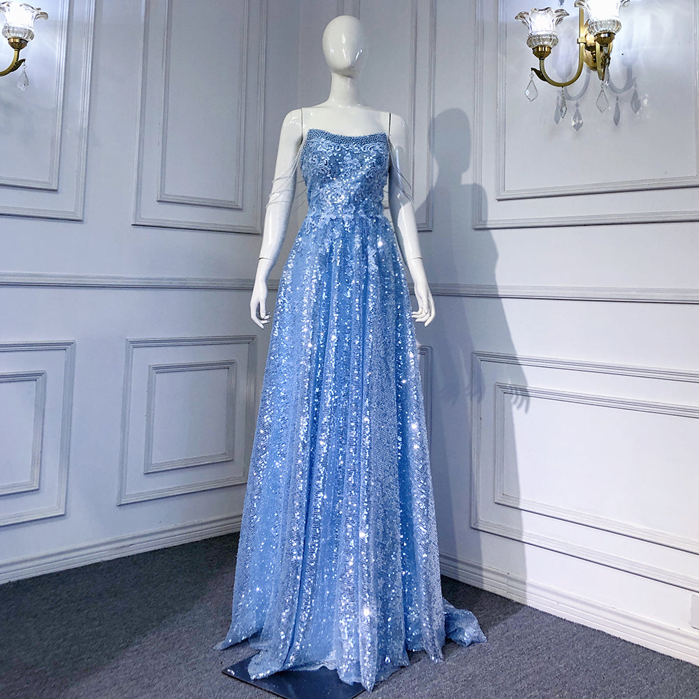 Blue A-line Luxury Evening Dresses Gowns 2025 Beaded Sparkle Sexy For Women Wedding Party LA71609