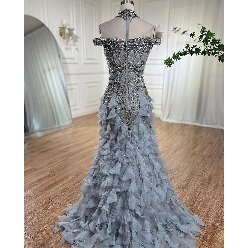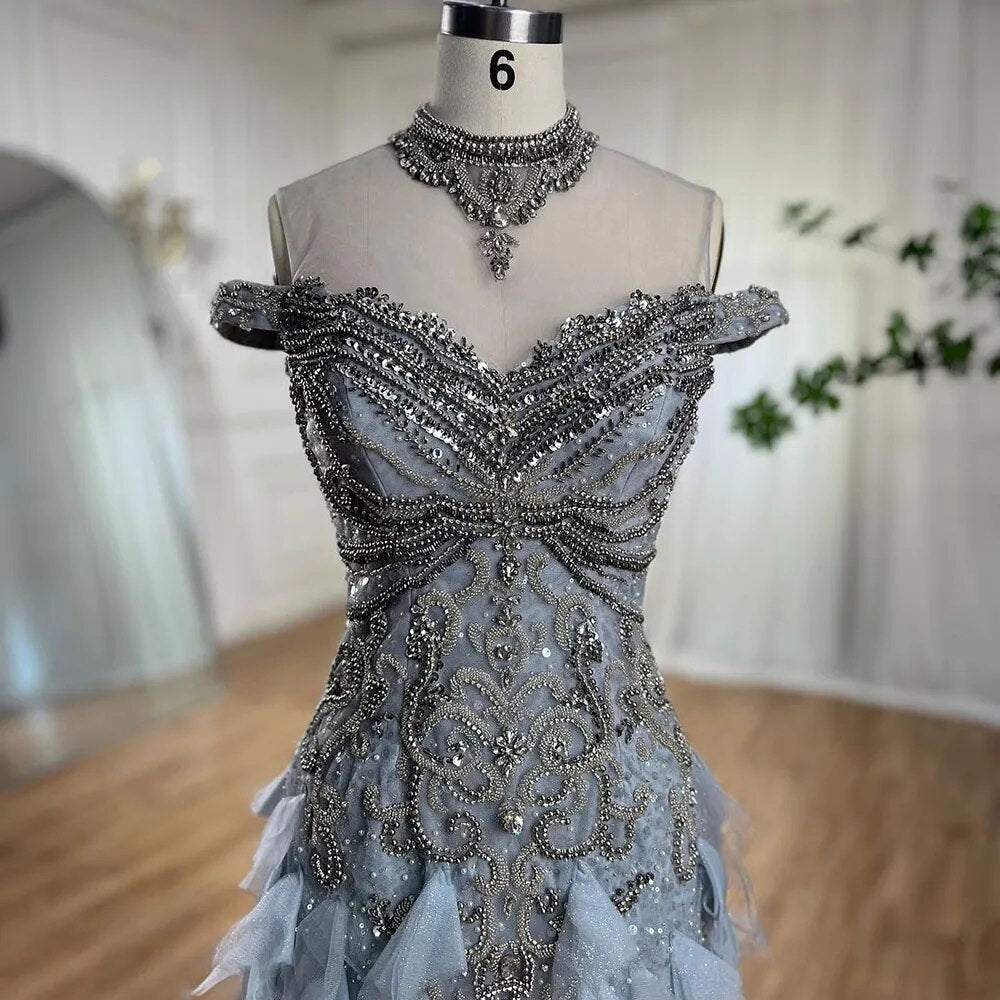 Blue Arabic Mermaid Luxury Evening Dresses Gowns Pearls Beaded Elegant For Woman Wedding Party 2025 LA72164