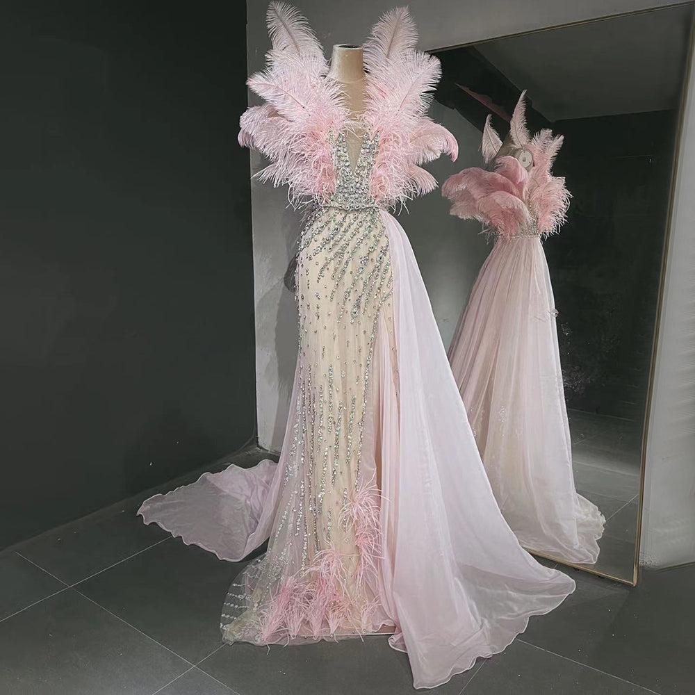 Blue Feather Beaded Evening Dresses Gowns 2025 Mermaid Luxury Elegant For Women Party LA71587