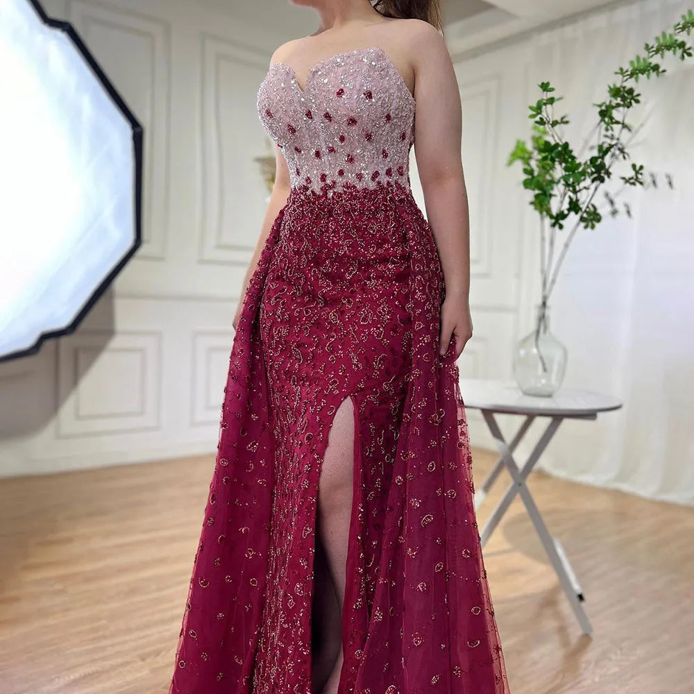 Blue Mermaid High Split With Skirt Sweetheart Strapless Beaded Party Dresses Formal Women Evening 2025 LA71796