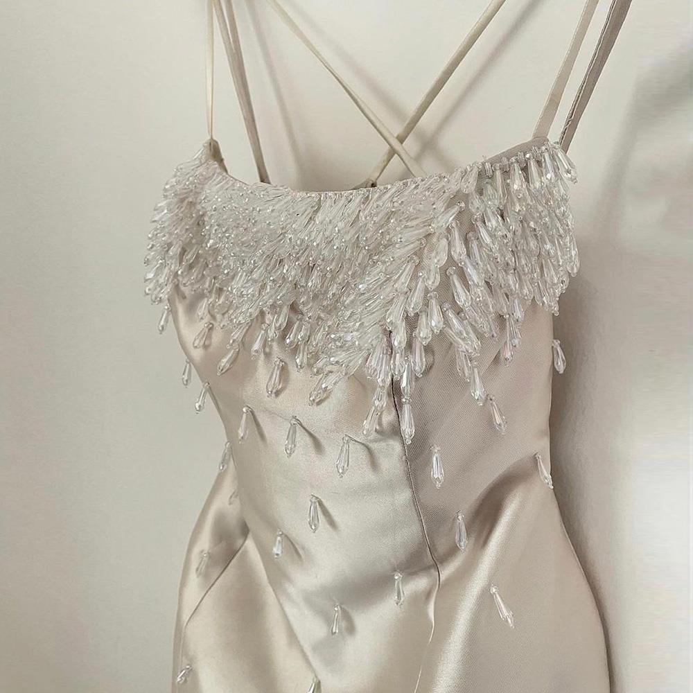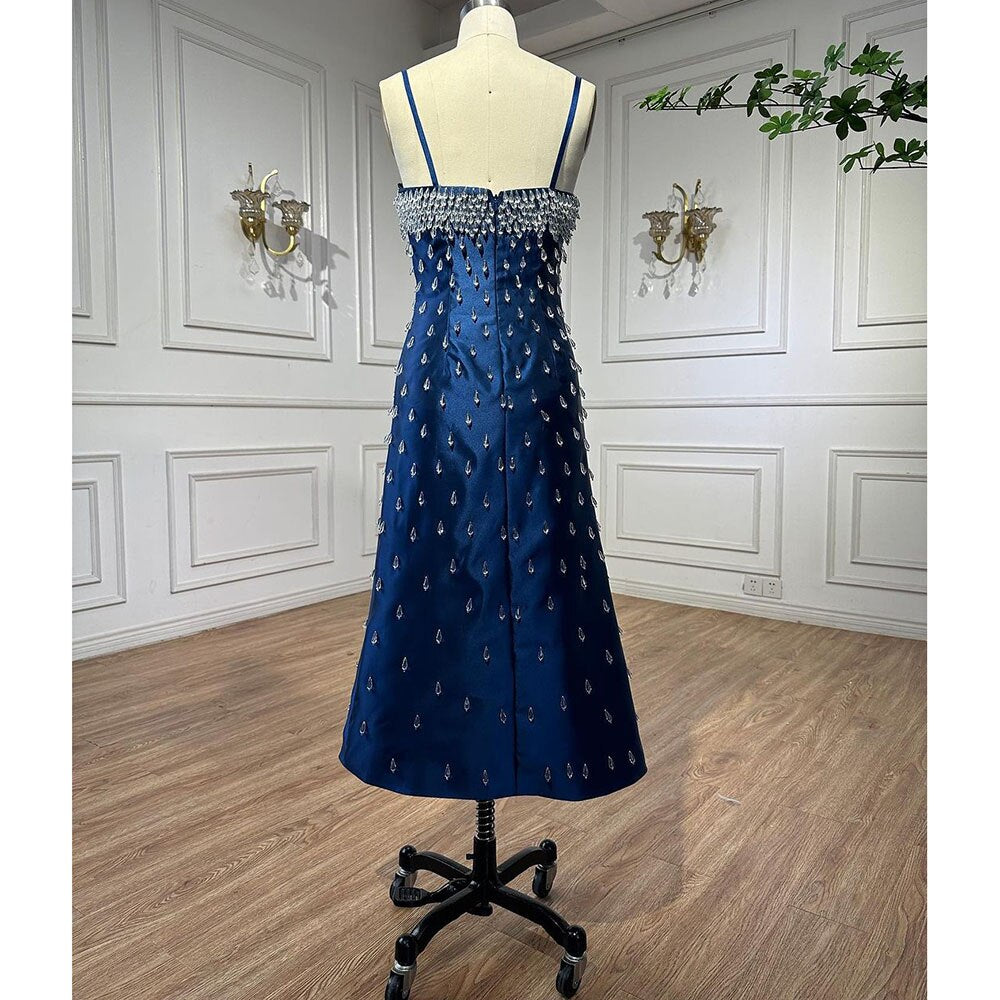 Blue Mermaid Sexy Spaghetti Straps Boat Neck Beaded Luxury Arabic Evening Dresses Gowns For Women Party LA71788