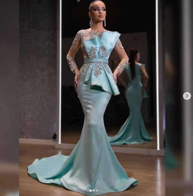 Blue Satin Beaded Mermaid Evening Dresses Gowns 2025 Elegant Luxury Gowns For Women Party LA71180