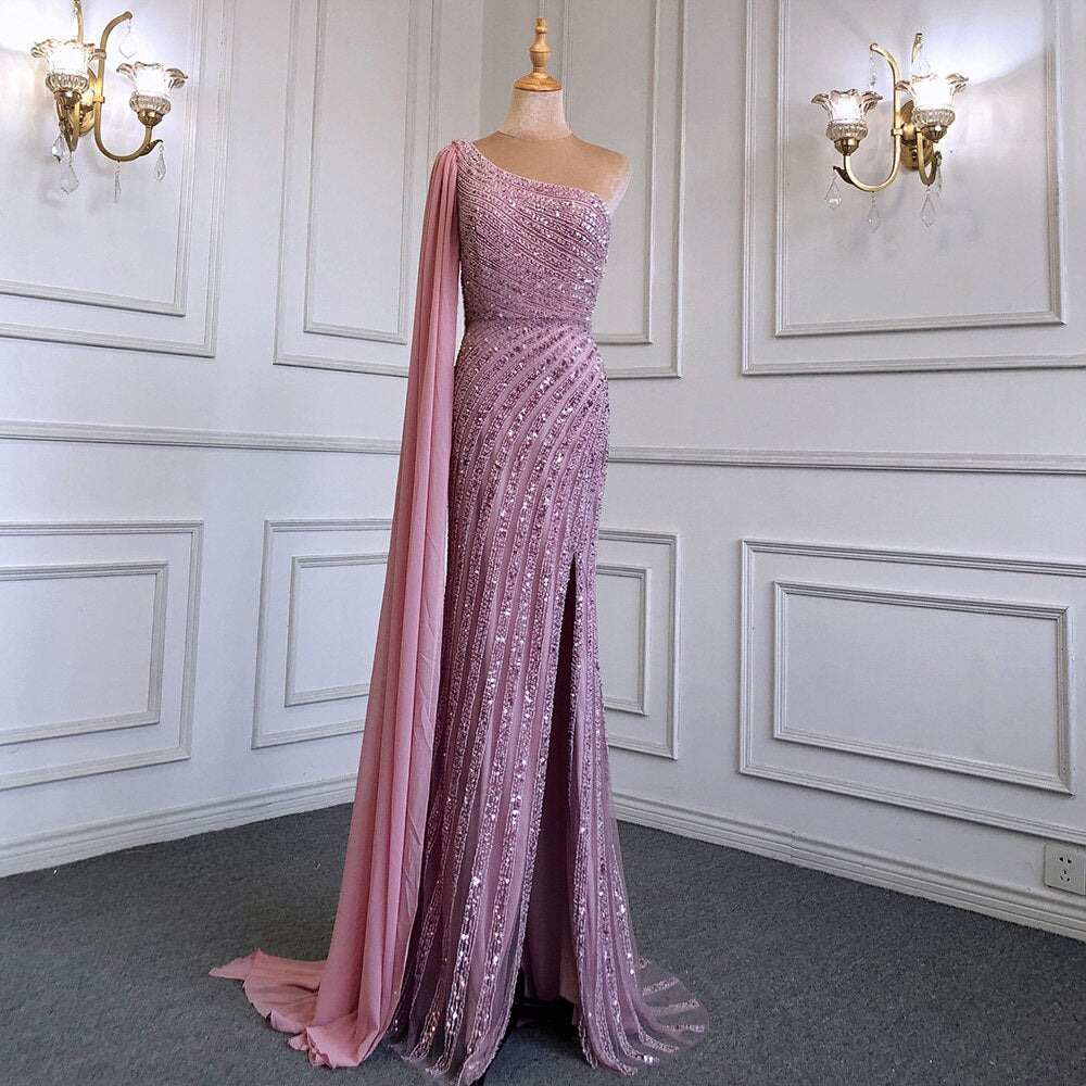 Caramel Mermaid Sexy High Split Cape Sleeve Beaded Luxury Evening Dresses Gowns 2025 For Women Wedding Party LA71708