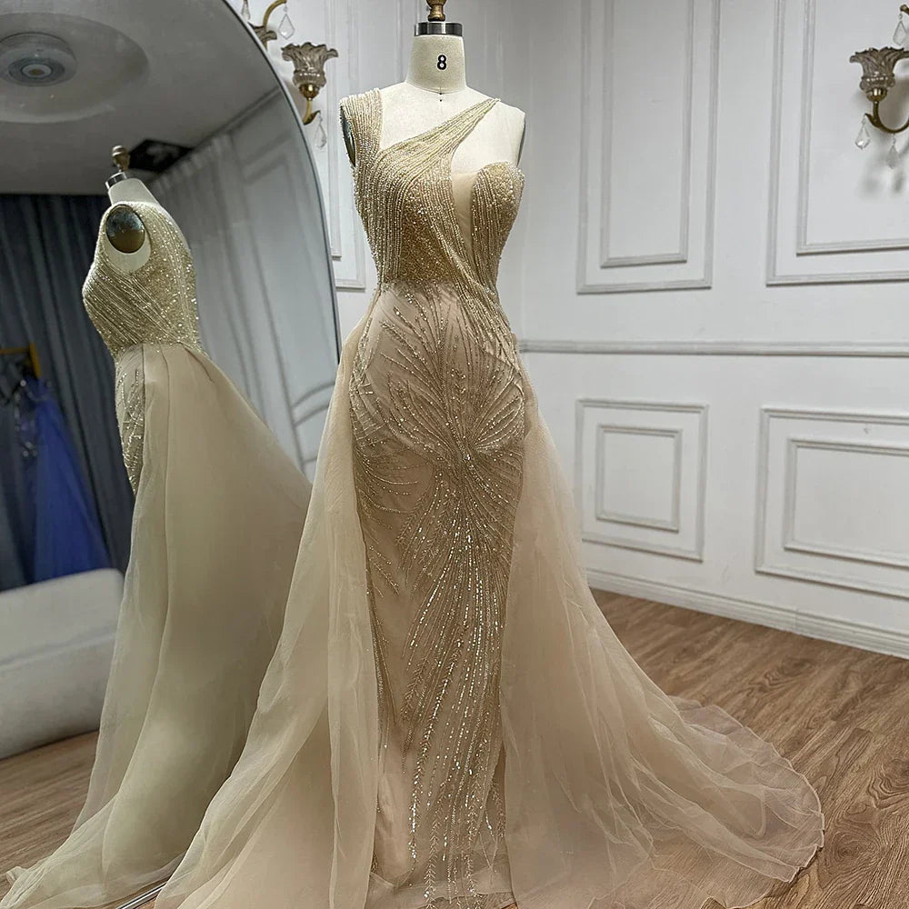 2025 Nude Mermaid Green Evening Gown with Elegant One Shoulder Overskirt for Formal Occasion LA72031A