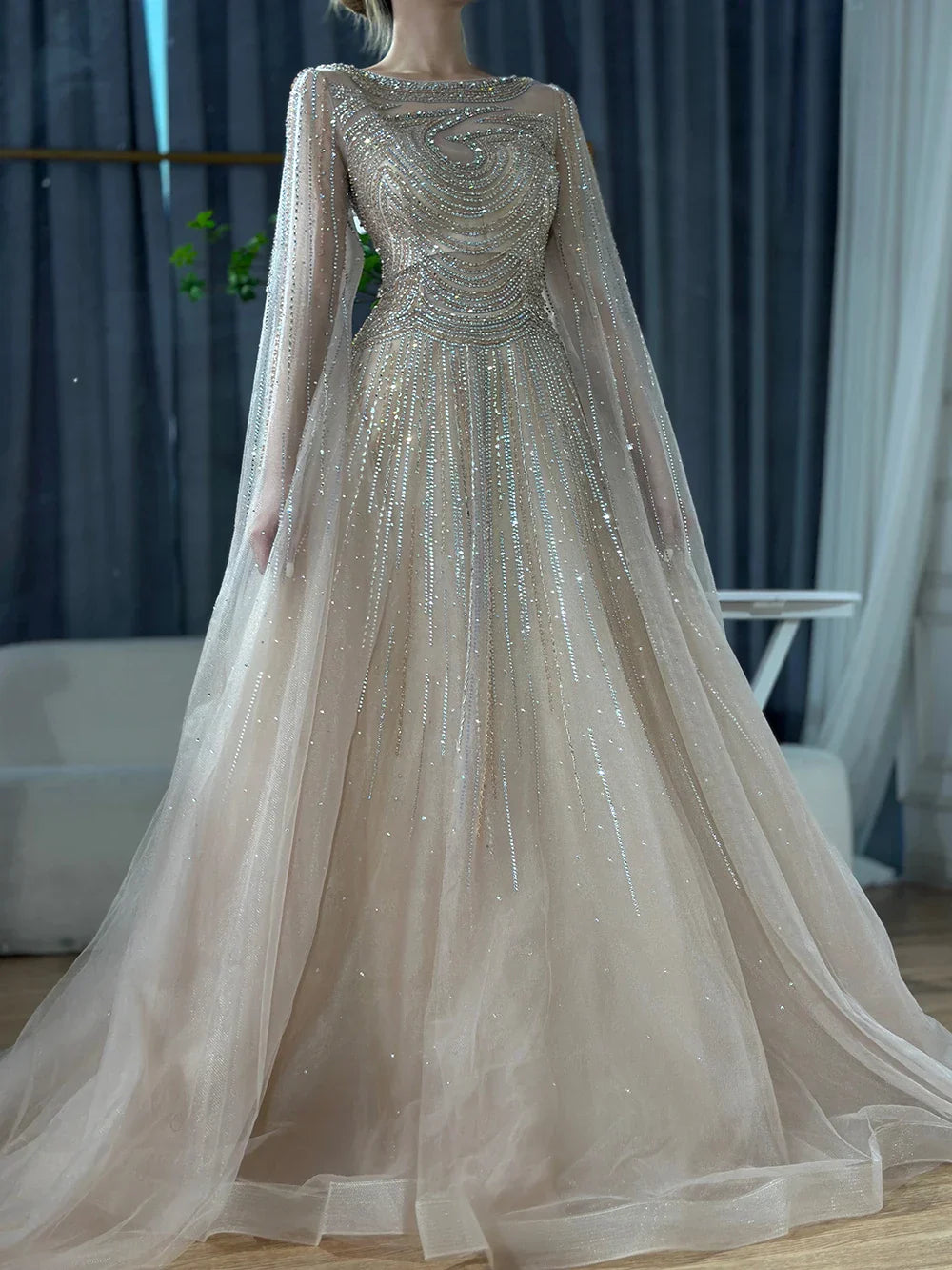 Arabic Caramel Saudi Evening Dresses with Cape Sleeves A-Line Beaded For Wedding Party 2025 LA72799