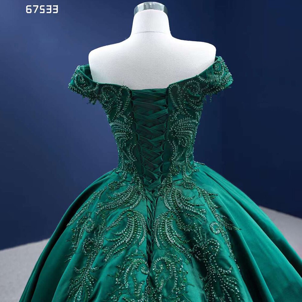 Dark Green High End Sexy Off Shoulder Luxury Lace Beaded Lace Up Bride Gowns Wedding Dress 2025 Custom Made HM67533
