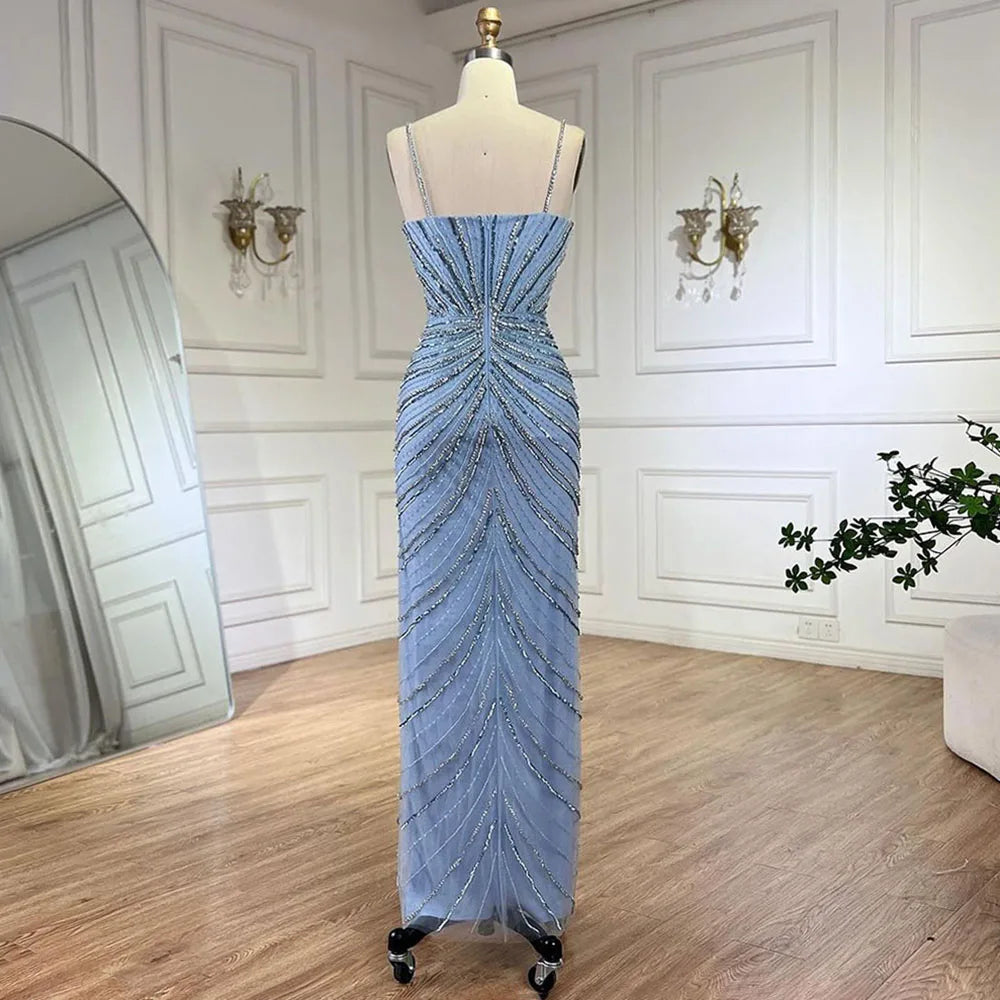 Dubai Blue Spaghetti Strap Mermaid Split Beaded Luxury Evening Dresses Gowns for Women Wedding Party 2025 LA72439