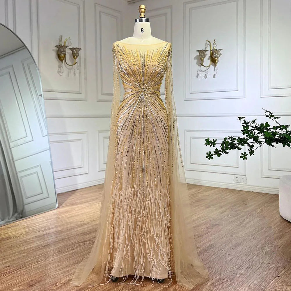 Luxury Lilac Feathers Evening Dresses with Cape Sleeves LA72036
