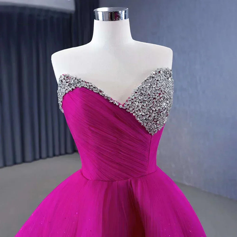 Fuchsia Detachable skirt Lace Up Pearls Beaded Luxury Bride Gowns Wedding Dress 2025 High End Custom Made HM231068
