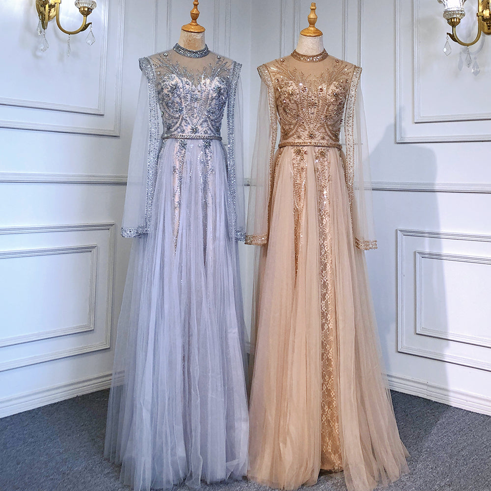 Gold Luxury Cape Sleeves Evening Dresses Gowns 2025 Beaded Mermaid Elegant For Woman Party LA71604