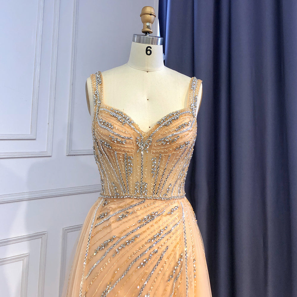 Gold Luxury High Split Evening Dresses Gowns 2025 Beaded Meramid Elegant For Women Party LA71373