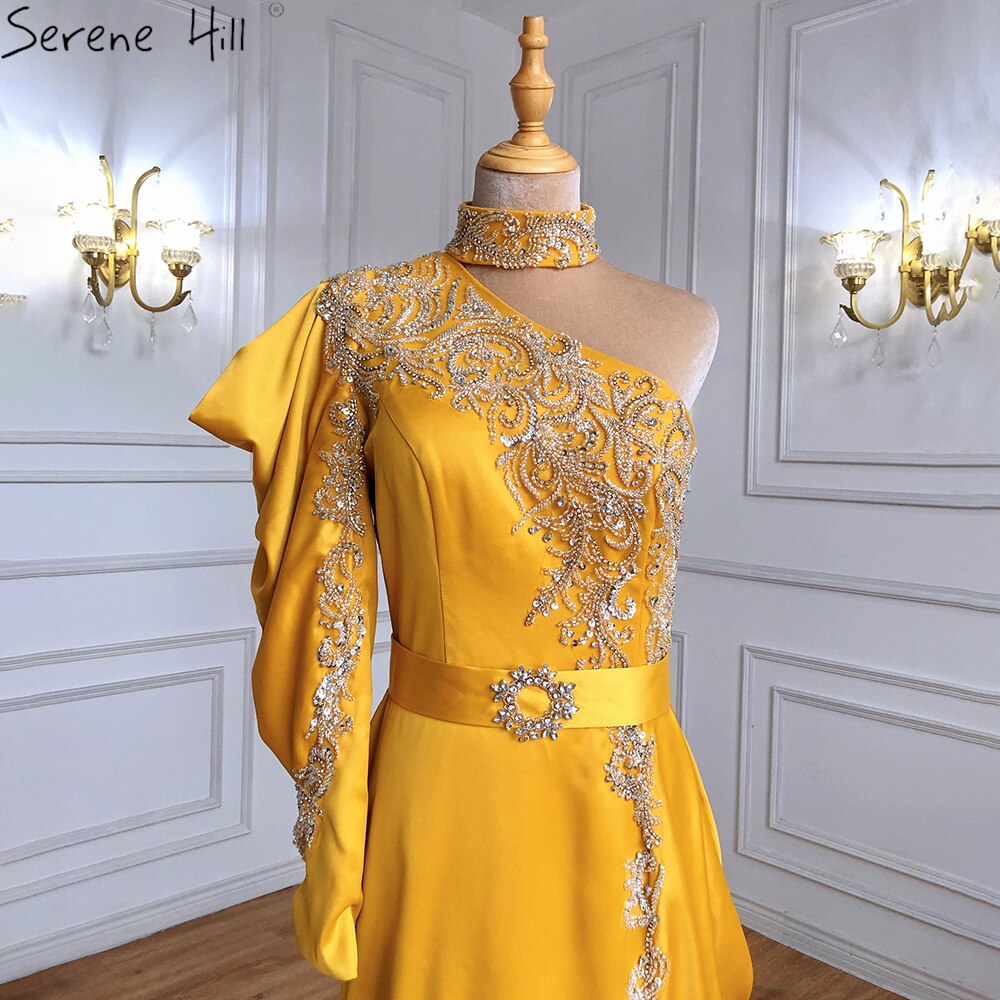 Gold Mermaid Beaded Evening Dresses Gowns 2025 One Shoulder Elegant Satin For Women Party LA71424